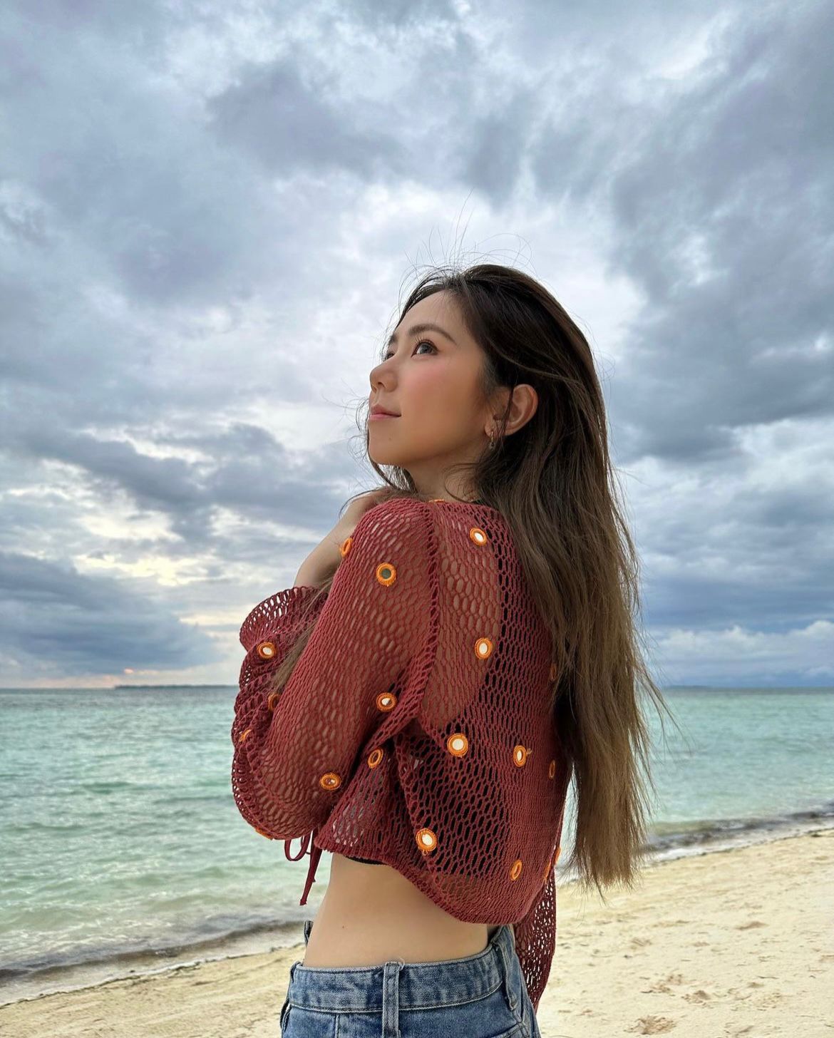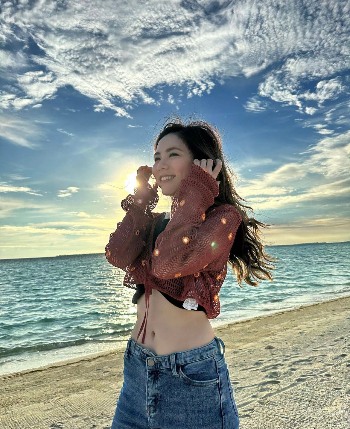 31-year-old Hong Kong singer Gloria Tang Tsz Kei, popularly known as G.E.M., recently took a break from her busy schedule in mainland China and treated her fans to a series of breathtaking beach photos on her Instagram account. The photos showcased G.E.M. donning a cropped top paired with a sheer mesh top and low-rise jeans, accentuating her slim waist. While she didn’t disclose her travel companion, her boyfriend was credited as the photographer, hinting at a possible pre-honeymoon getaway.